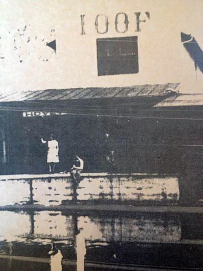 The old building was made up of five rooms, once contained a ladies rest room and waiting area on the east end which later became the signal maintainer's office, the office for the agent, operator and clerk, a men's waiting room and then an office for the Railway Express and a large storage room. Men and women used to enter the depot and purchase tickets from separate windows. There used to be a large freight house on the west end of the building that was full all the time. Carloads from Evansville would come in selling wholesale and four or five workers would haul merchandise downtown to our various stores. Loading cattle was common place and refrigerated meat would arrive each week here. Keck-Gonnerman would load threshing machines on the loading platform. When the circus would come in, it proved to be a popular attraction as large groups would watch the unloading of animals. Santa would arrive by rail for the parade; people would go to Cardinal baseball games from here or to Chicago. The depot would be kept busy by our flour mills and coal would be unloaded here. A large water tower once stood just west of the station for the locomotives to take on water in the days of steam. Alvin is shown with a semaphore, a signaling device with his right hand and holds a pole and string in his left hand that was used to deliver messages to passing trains. The semaphore was an oddity, a large iron machine with two handles, one for southbound trains and one for northbound. Each handle could be placed in three positions. Pushed all the way forward, the handle signals red outside the station on a tall light post. In the middle slot it signaled yellow, caution, and in the left it was green. A hook and pole was used for passing messages. A long pole with a fork on the end holds a string with a message on paper tied in the middle. As the train passes by a man reaches out and grabs the string from the pole and the message is delivered. "Speedy delivery." Roscoe Bayer worked for L&N starting as a clerk in 1917. A old record book at the depot dated 1906 shows that a clerk started at $25 a month, an operator at $55 a month and a station agent at $90 a month. Bayer made $37.50 a month in 1917. Daws said he began as an operator making 87 cents an hour. All these little artifacts are now gone due to a fire. Lost is the old caboose stove and even an original lantern on the wall, once used to signal trains with a red globe if the train was supposed to stop, blue if men were working and a white and green combination if the station had a passenger to board. So is the old ledger, and semaphore.....but memories remain and drawings of the old structure still are present and stories are preserved from troops going off and returning from war to circus parades. The first railroad through Mt. Vernon was 1870. Black's Grove was part of the railroad lore of the time too. It was a place for political speakers who stopped by train to deliver their messages. President Truman's train stopped just east of the depot in 1948. I have read stories of dinners given on the lawn of the Elks for soldiers heading off to the First World War then marched in a parade to the depot and given flowers as they boarded the train. There once was a bar on that little island that has been the scene of many restaurant offerings. People would go there to have a drink when waiting on a train. Buggies would pull up to take passengers to the downtown hotels and take them back at train departures.
