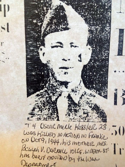 Arthur K. Roos was 19 years old when he was captured by the Germans at the Battle of the Bulge on December 19, 1944. He remained a prisoner until an American tank crashed through the camp's gates on Easter Sunday, 1945. He was taken along with others to a field hospital and then to a general hospital. Six weeks later he came home for a visit, but didn't stay long. He ended in Washington State guarding six German prisoners of war. When captured he was sent by rail to the camp and arrived on Christmas Eve. It was six days before he had anything to eat. Usually he was fed one bowl of soup a day and maybe some dark bread filled with sawdust in the evening. His barracks had bunks three high and no heat. They had no soap to bathe with at all. His times were filled with playing cards, exercise and any mind games that would free him from his horrible plight. His service was over on Thanksgiving Day 1945. He later moved to Missouri.