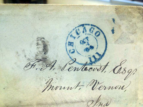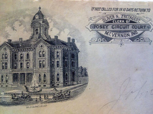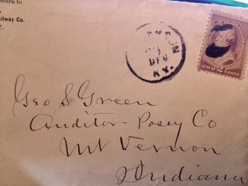 A old 19th century envelope donated to the Posey County Historical Society by Jeff Miller