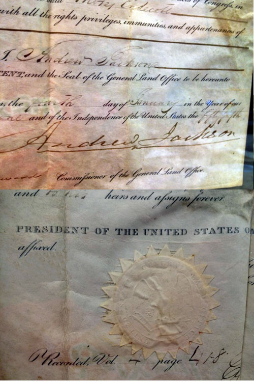 Land grant for Posey Settler, Endicott signed by President Andrew Jackson with seal in the early 1830's