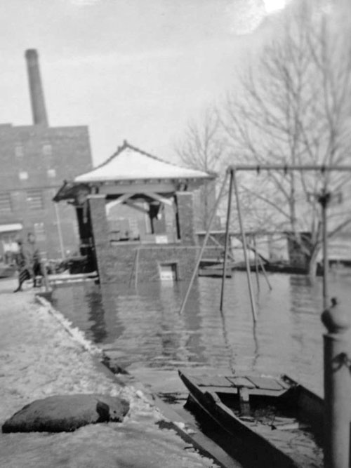 Where the Water Works now stands was once the home of Judge Wilber and it was known as "Noah's Ark" for the variety of items within. One story of its origin says that a stranger passed by, peered into the place and exclaimed, "this must be Noah's Ark," to which the good Judge replied: "It is, we have everything here but a Jack Ass....come on in."