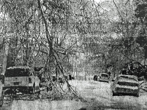 Oldtimers long ago called it, "The Great Freeze of the Wabash." Rains brought the river to an unusual high stage and when it was at its highest point the weather turned its worse and the backwater in the woods froze in a thick sheet of ice. At that time the Black river bottoms were all covered with a dense forest and it froze a thick sheet of ice all through the bottoms. The weather stayed extremely cold for a very long time and when the river went down the water ran down from under the ice while the trees still held the ice up. It was said a man could ride on horseback for miles under the ice. The swaying of the trees in the wind caused the ice to grind the bark off the trees and when the ice did melt; all the trees had circles on them showing how high the water had been. Some of those trees showed their marks for up to thirty years.