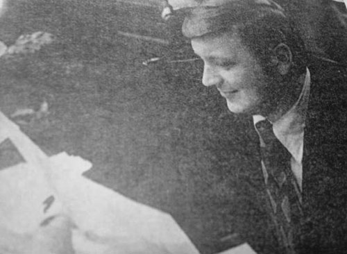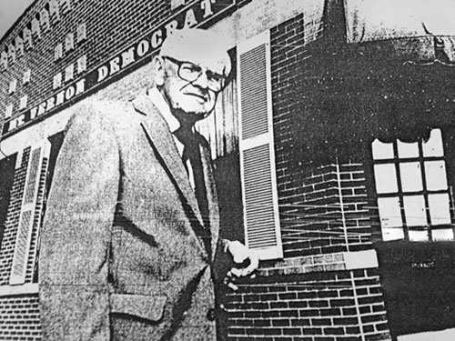 Orvan Hall, Publisher and Editor of MV Democrat. Here he is checking with old friends in 1981.